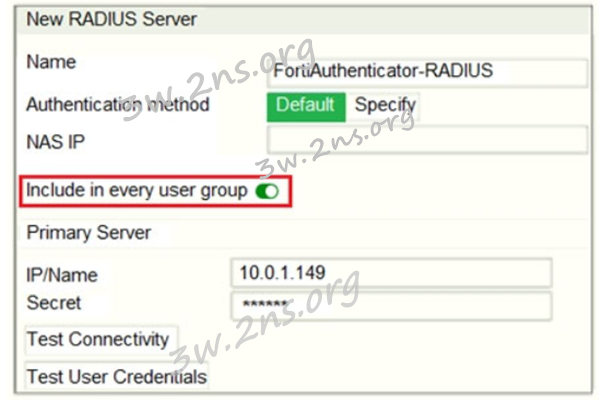 A. This option places the RADIUS server, and all users who can authenticate against that server, into every FortiGate user group.