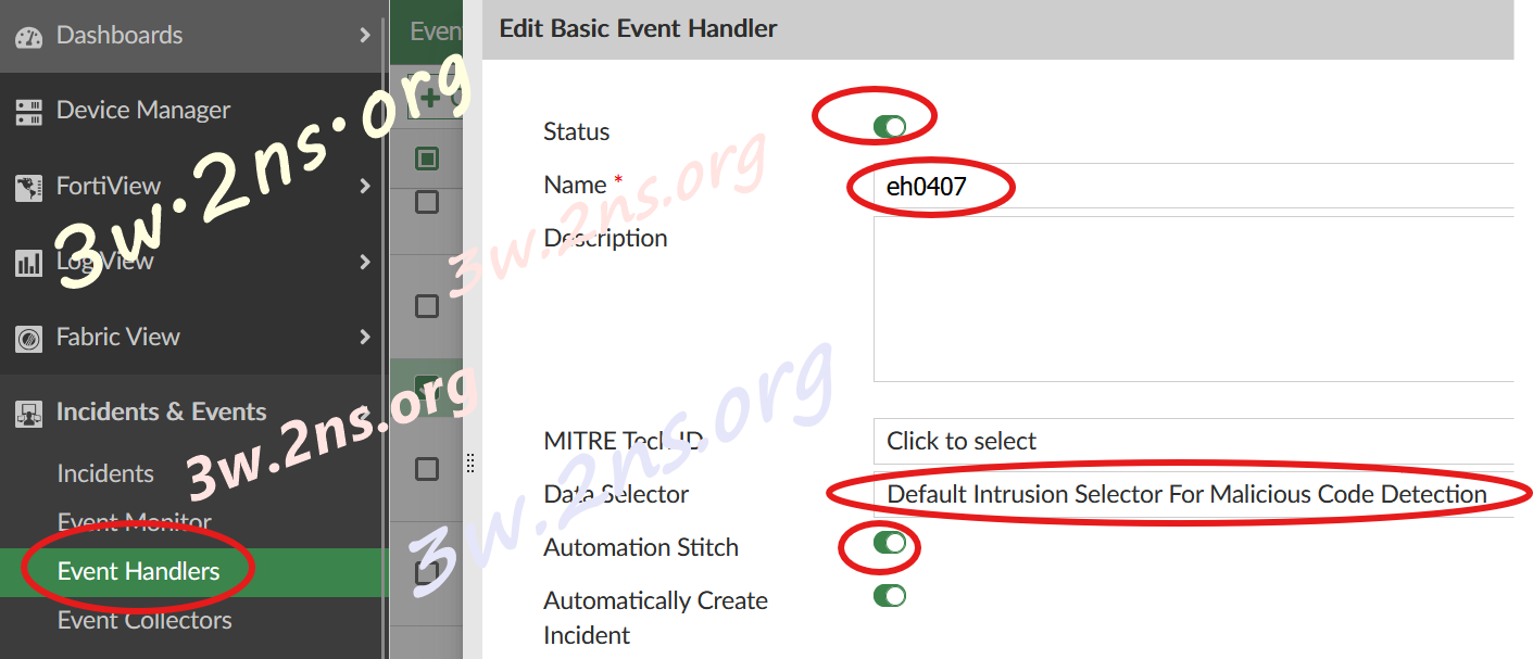 進入 FortiSoC > Event Handlers(舊版FOS在Event Handlers)。